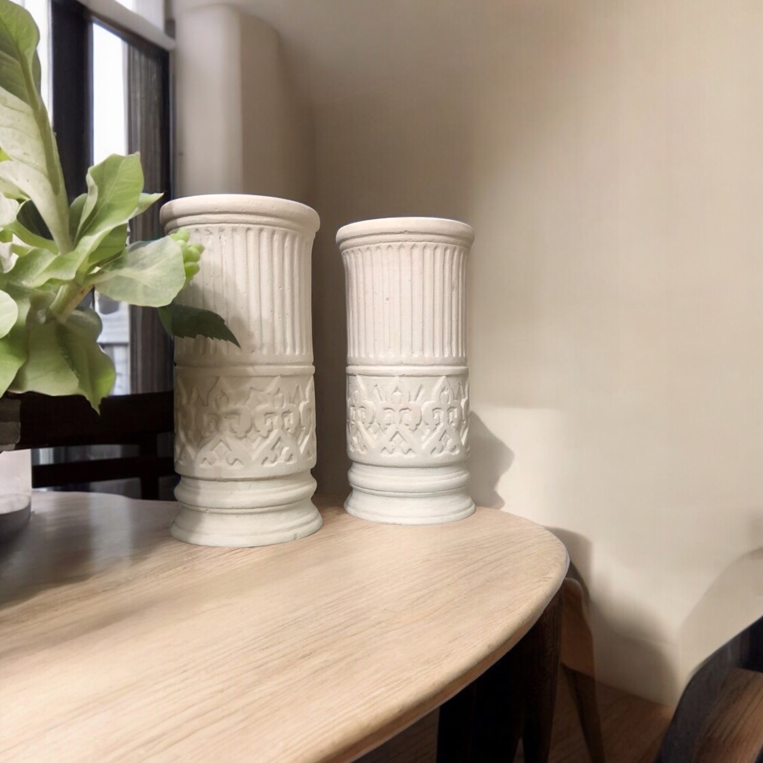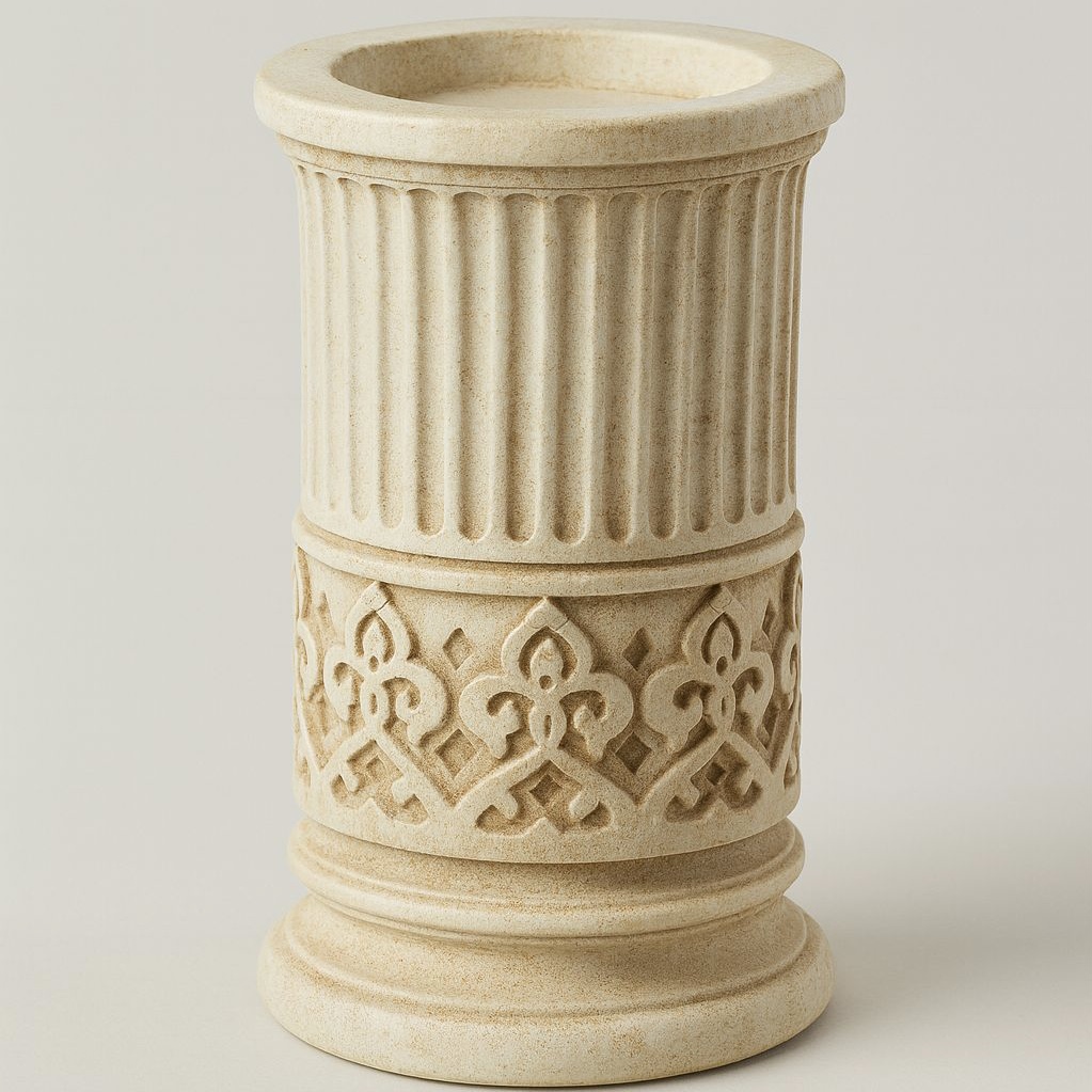 Sütun formundaki gövde ve işleme detayları, mekâna tarihsel bir karakter ve sofistike bir atmosfer kazandırır. Tealight mum ile kullanıldığında yumuşak ve sıcak bir ışık yayarak hem yaşam alanlarında hem de kurumsal mekânlarda etkileyici bir ambiyans oluşturur. 13 ve 15 cm olarak 2 farklı boyda üretilir.
