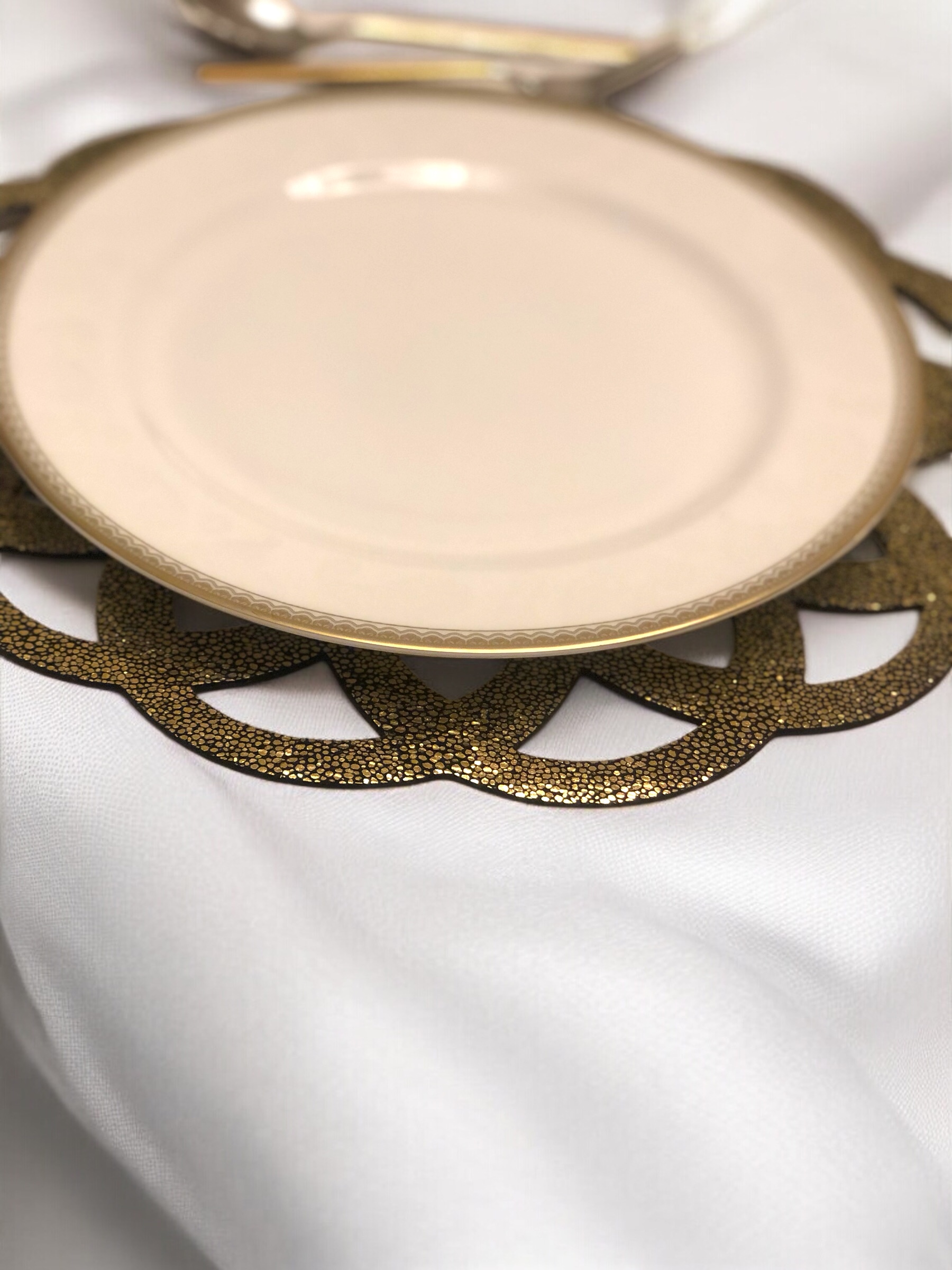 Çap 32 cm. Farklı deri alternatifleri ile en şık davet masaları için tasarlandı